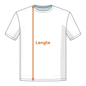 Meet de lengte van de bovenkant van het t-shirt naar de onderkant, precies zoals aangegeven door de oranje lijn.